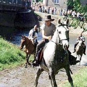 Même les enfants n’étaient pas tendres, et raillaient ces sauvages venus de « la Sibérie de l’Aisne »… Un jour donc, un charretier, au gué d’Effry, n’arrivait pas à faire franchir l’Oise à son attelage. Saint-Eloi vint alors à passer. Il bénit le cheval, qui de ce pas traversa la rivière. Depuis, la tradition s’est installée. Chaque année, une messe est dite en plein air à Effry. Les chevaux sont bénis. Saint-Eloi est installé sur un tracteur fleuri. On l’emmène au gué de l’Oise. Alors, les cavaliers traversent et retraversent la rivière, en une sorte de fête équestre. Et chacun de franchir l’obstacle avec sa monture : pur sang ou cheval de trait, avec la famille, les enfants…